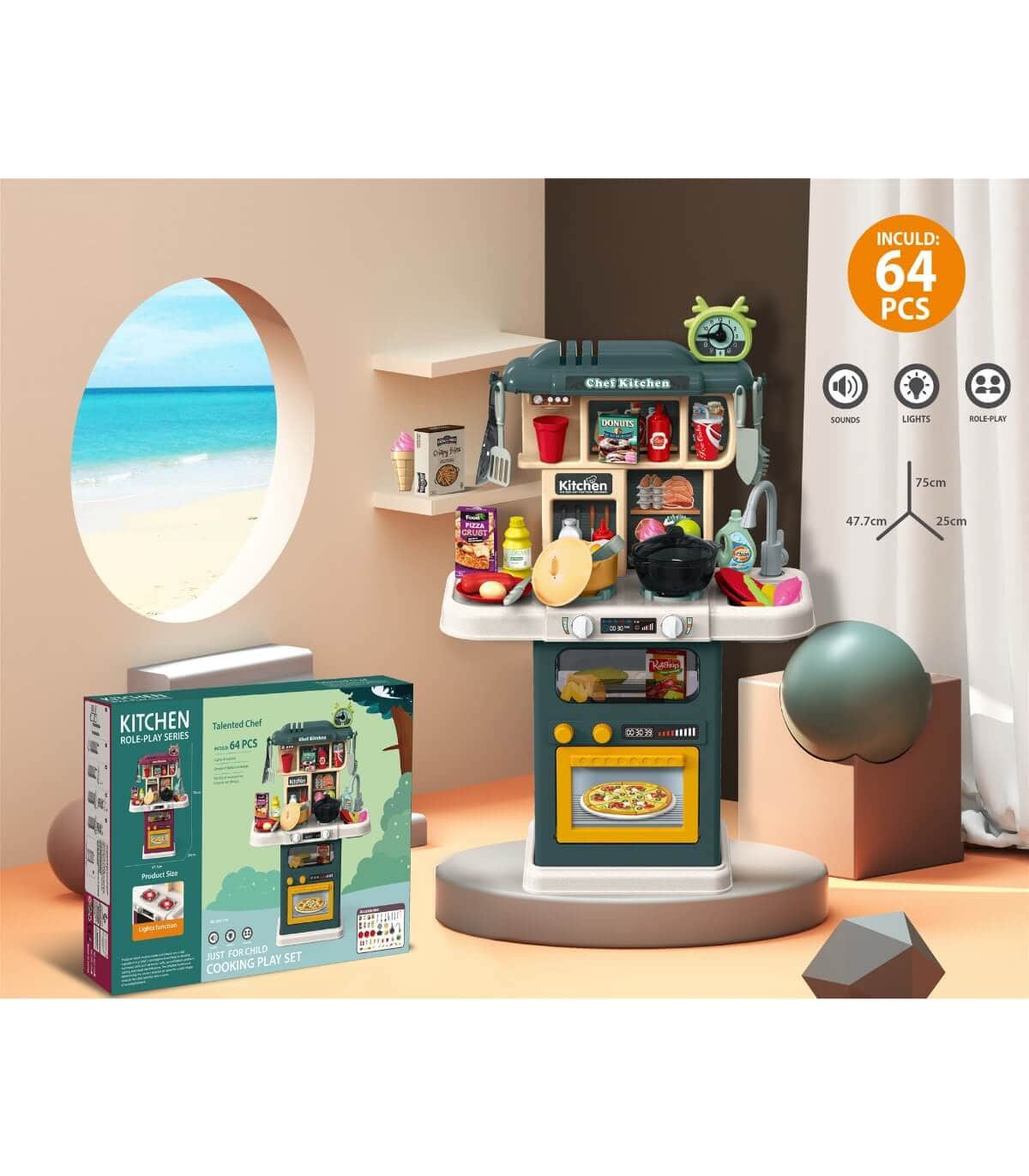 Детска кухня с 64 аксесоара е страхотен интерактивен кухненски комплект с ниско търсене, предназначен за ролеви игри и развитие на въображението. Тази образователна играчка за готвене включва реалистични звуци, светлини и множество кухненски принадлежности, които стимулират креативността и социалните умения на децата.