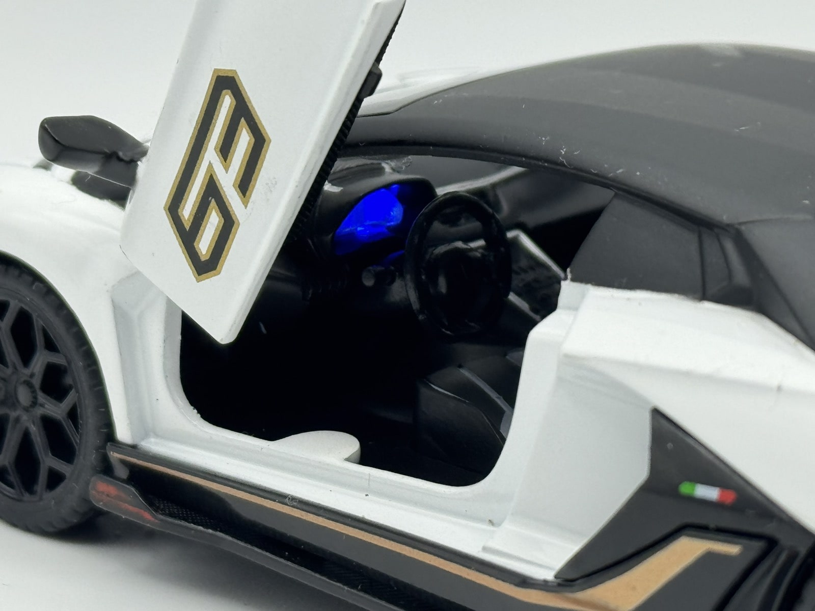 Тази метална спортна количка играчка със светещи фарове, отварящи врати и звук е перфектният избор за родители, които търсят детска суперкола модел, метална спортна кола 1:32, или умалена играчка със светлини за малки фенове на високите скорости. Конструкцията от метал и прецизните детайли я правят идеална както за игра, така и за колекциониране.